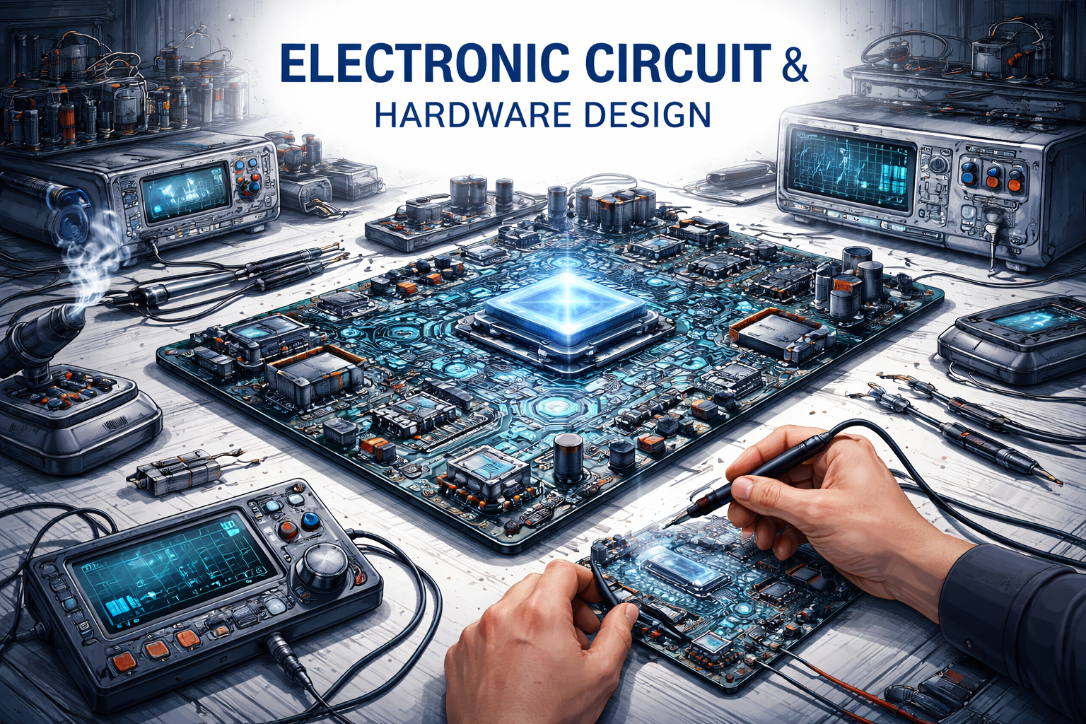 Electronics are vital in modern technology products. At LOFTY INNOVATIONS, the hardware team designs customized electronic circuits based on specific functional requirements. This includes selecting microcontrollers, sensors, power systems, and communication modules such as WiFi, Bluetooth, and LoRa. Their capabilities cover analog and digital circuit design, sensor interfacing, power supply systems, PCB layout, and complete hardware architecture. Each electronic system is engineered for high reliability, efficiency, and scalability, ensuring optimal performance across a wide range of applications.